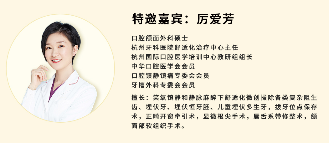那么如何才能讓患有牙科恐懼癥的人們和兒童患者順利接受口腔治療呢?今天我們邀請(qǐng)到杭州牙科醫(yī)院舒適化治療中心厲愛(ài)芳主任為大家介紹舒適化看牙的秘密!