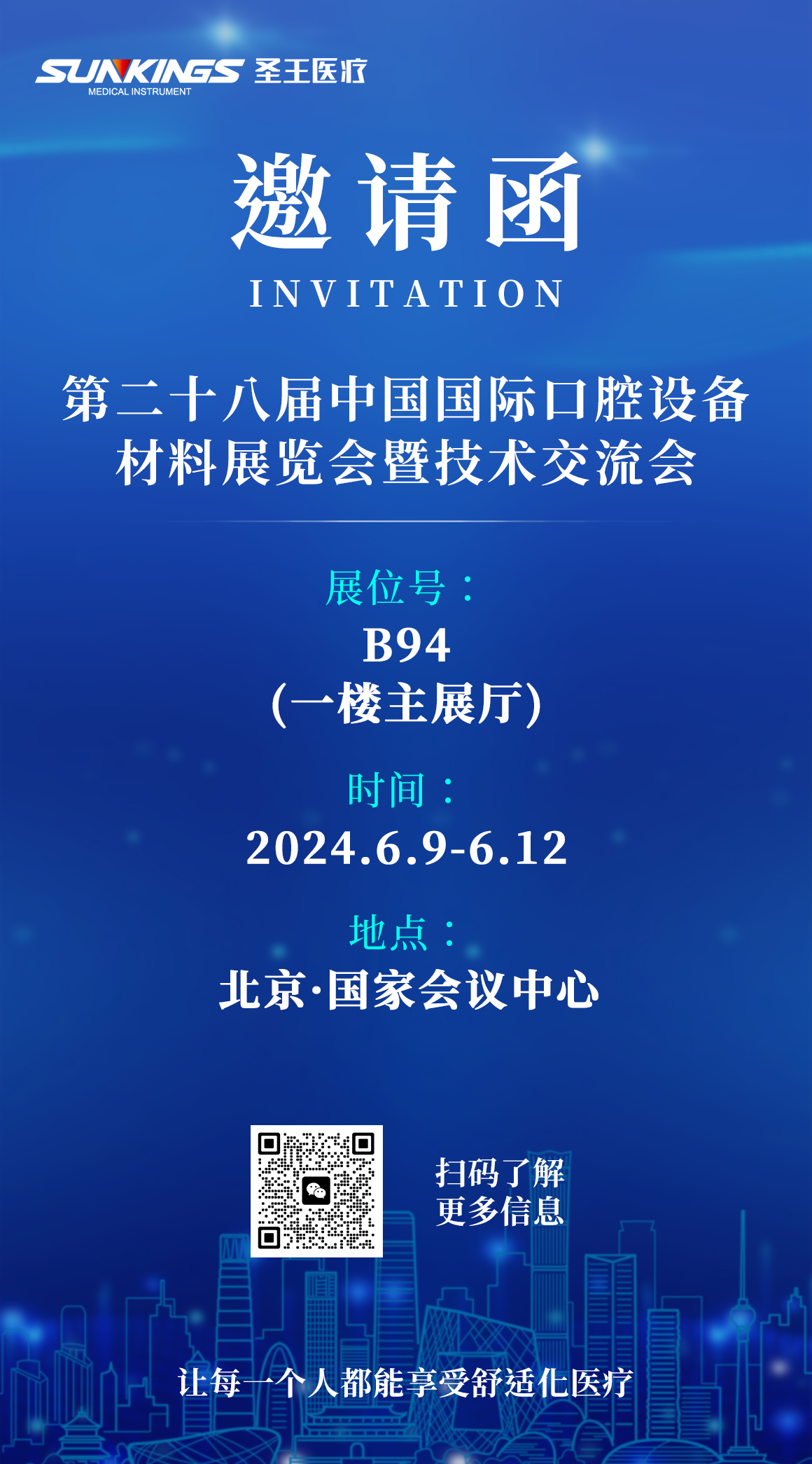 圣王醫(yī)療將于2024年6月9至12日,在北京·國家會議中心參展第二十八屆中國國際口腔設(shè)備材料展覽會暨技術(shù)交流會,展位號:B94(一樓主展廳),在此誠摯地邀請全國各界的伙伴們,蒞臨現(xiàn)場。